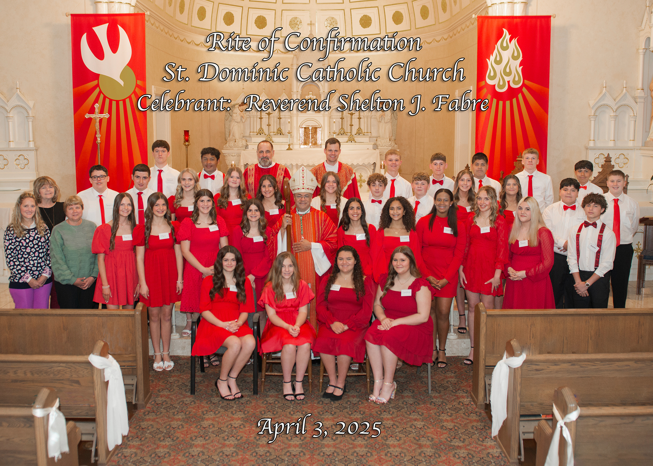 Students attending both St. Dominic School and the Parish Religious Education Program are prepared to make the Sacrament of Confirmation during their eighth-grade year.
